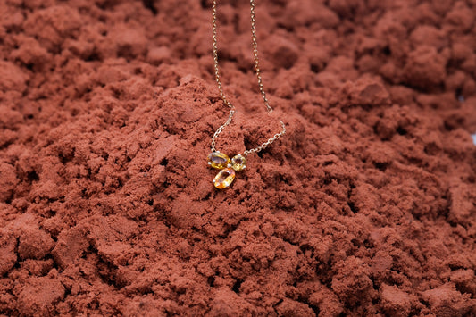 Chaque bijou est un hommage à cette terre unique. Je les ai imaginés comme des fragments de paysage, à porter sur soi. Des formes douces, solaires, minérales, entièrement fabriquées à la main dans notre atelier à Lyon, en or 18 carats recyclé. Pour donner vie à cette palette du Sud, j’ai choisi des pierres précieuses aux couleurs chaudes et vivantes : tourmalines, grenats, péridots, saphirs, citrines, diamants bruns… Chacune d’elles raconte un éclat de lumière, une fin d’après-midi, un souvenir d’été.