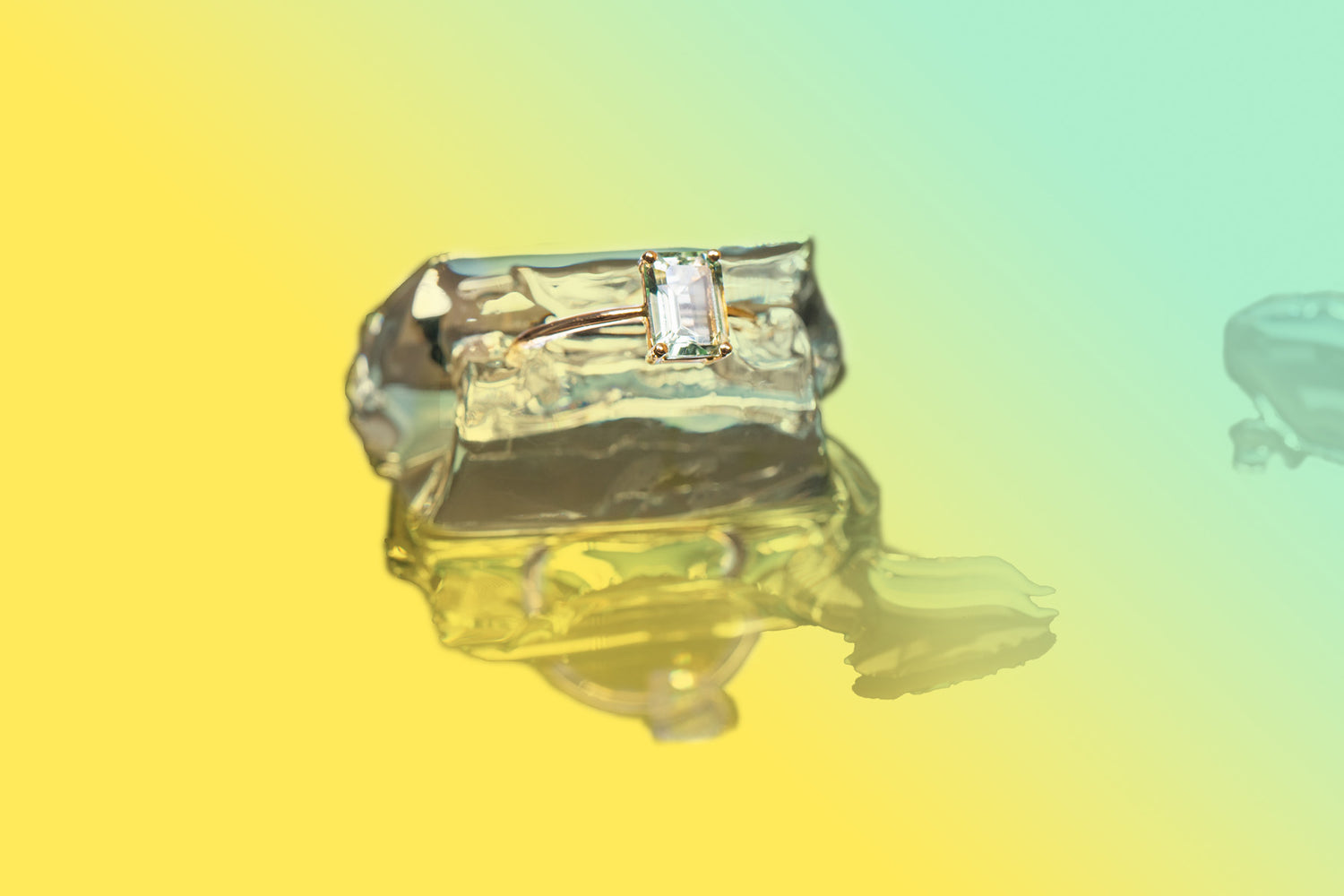 "Un éclat d’eau verte posé sur la peau. Le béryl révèle ici toute sa douceur cristalline, entre transparence et lumière. Une pierre rare, pleine de calme et de profondeur, pensée pour vibrer dans une architecture fine, nette, essentielle."