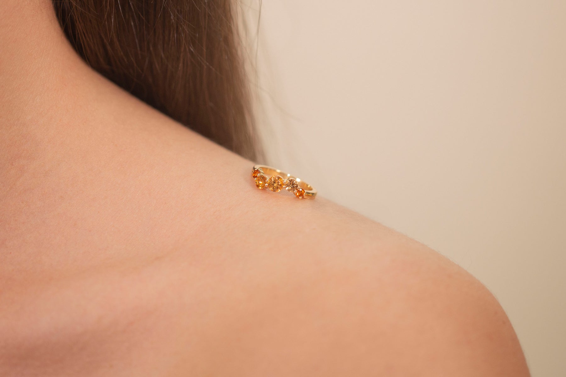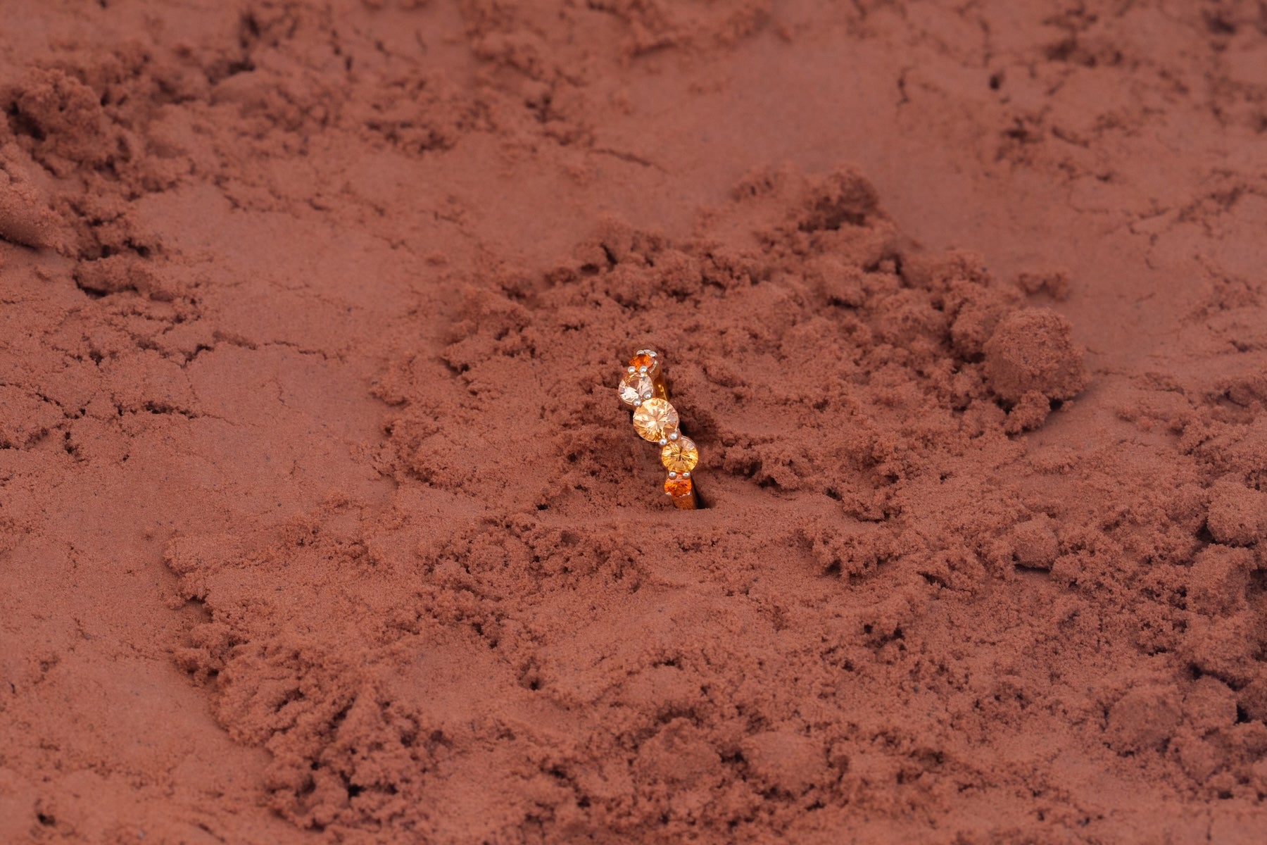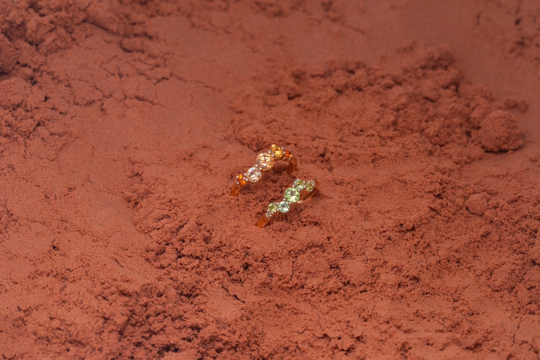 "Le design ondulé de cette bague reflète la géologie du Sud, mettant en lumière l’intensité du grenat. La finition artisanale garantit la robustesse et le confort au porté."