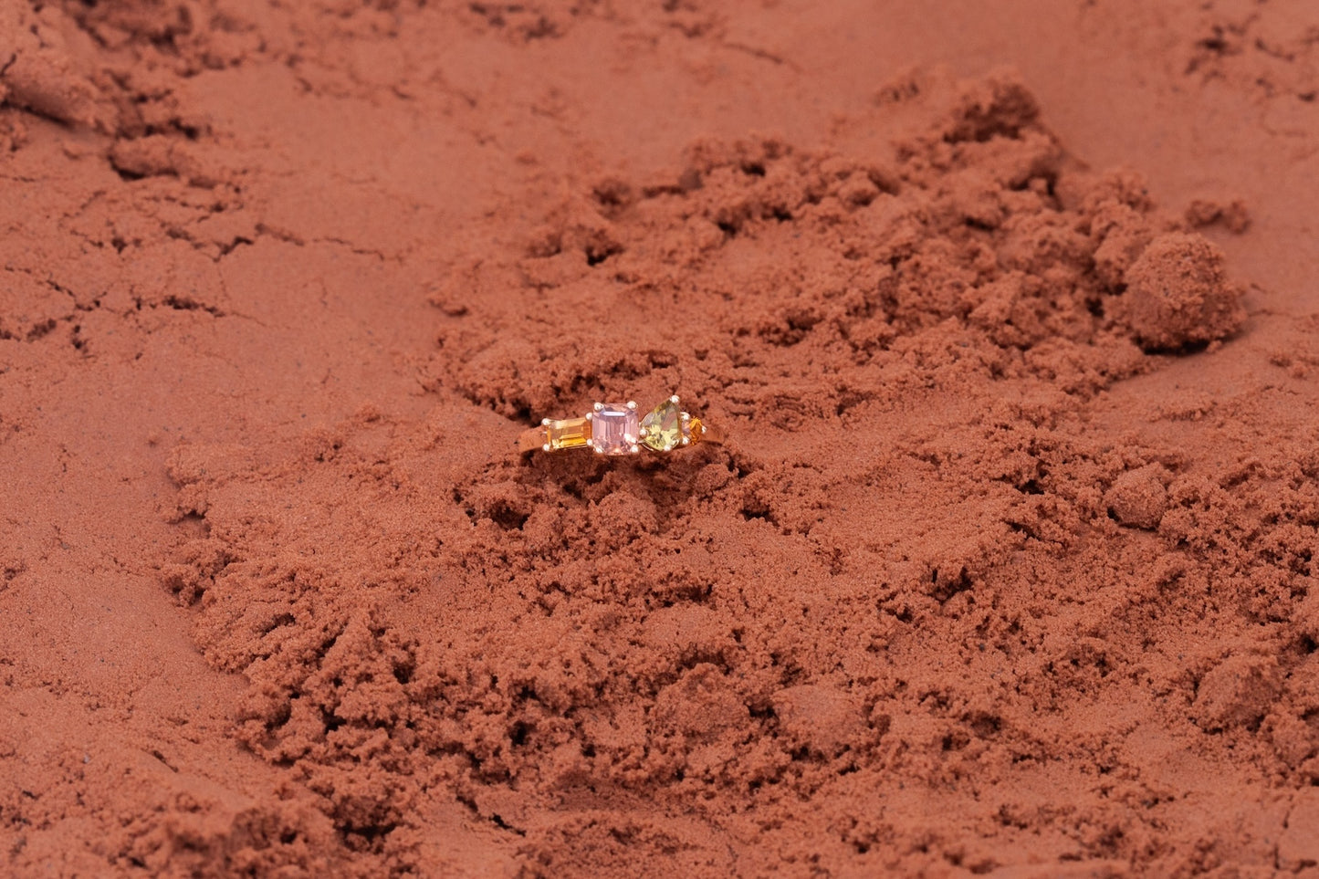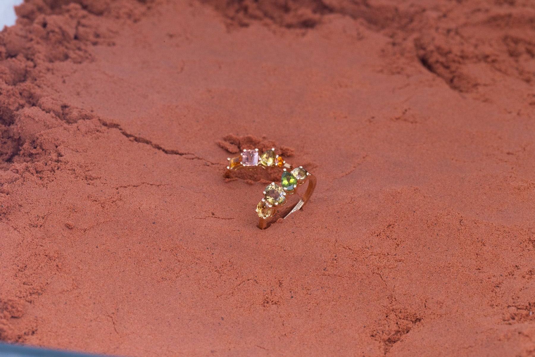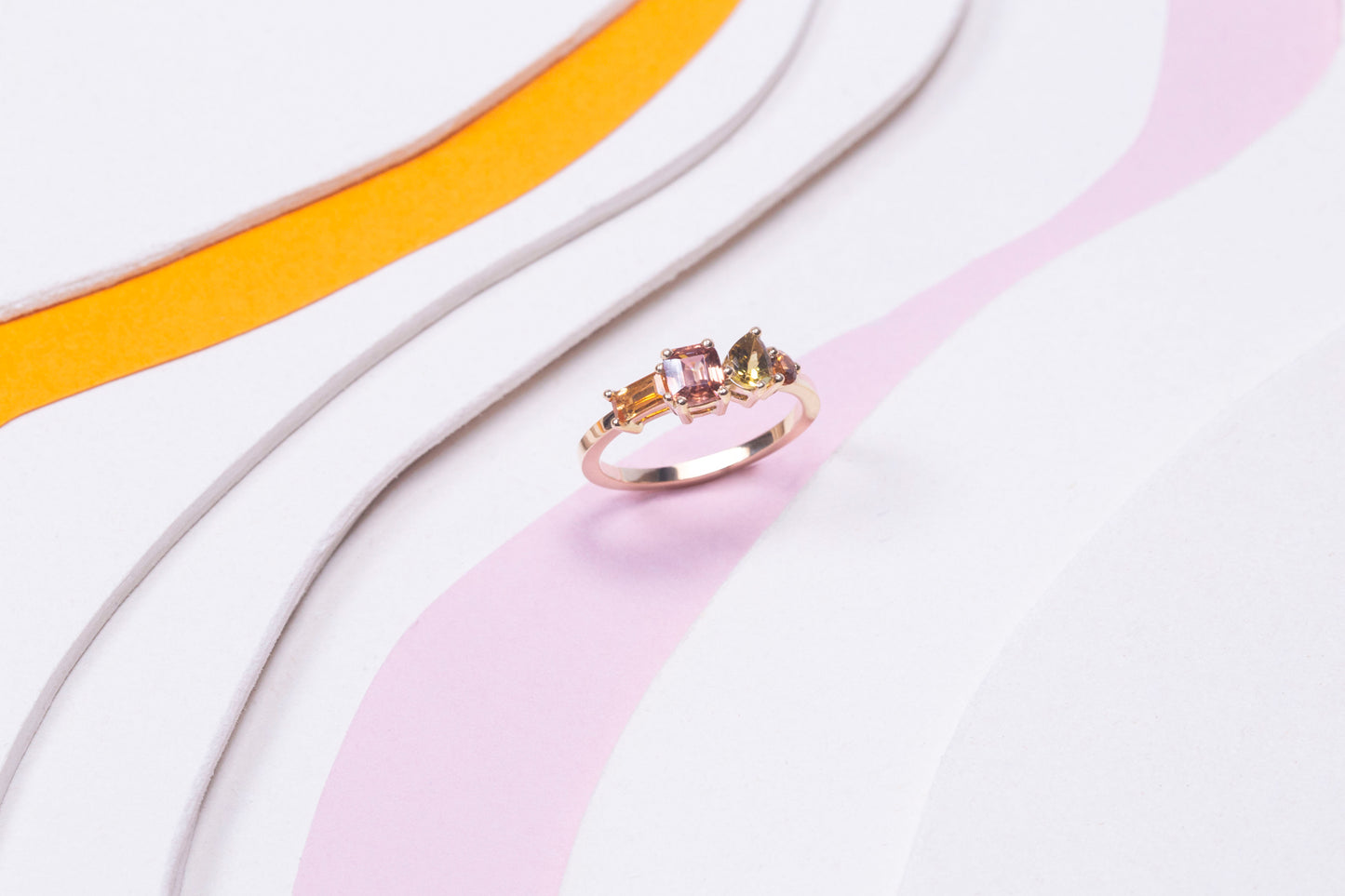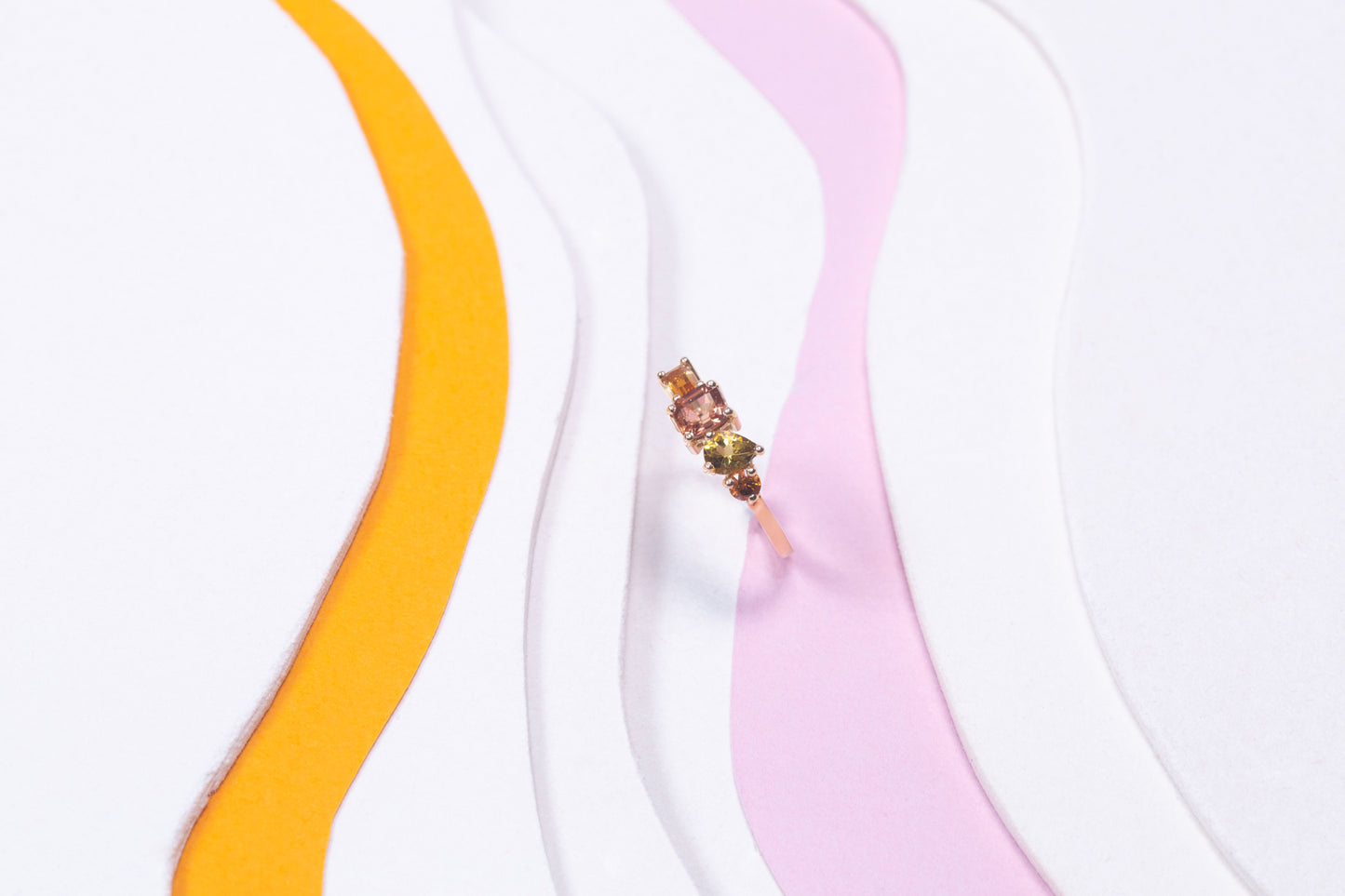 "La bague Vallée Orange exprime une harmonie éclatante de teintes chaudes, où chaque pierre précieuse, choisie pour sa pureté et son intensité, dialogue avec élégance. Les formes variées des gemmes, mises en lumière par un serti délicat, donnent naissance à une pièce d’une grande richesse visuelle."