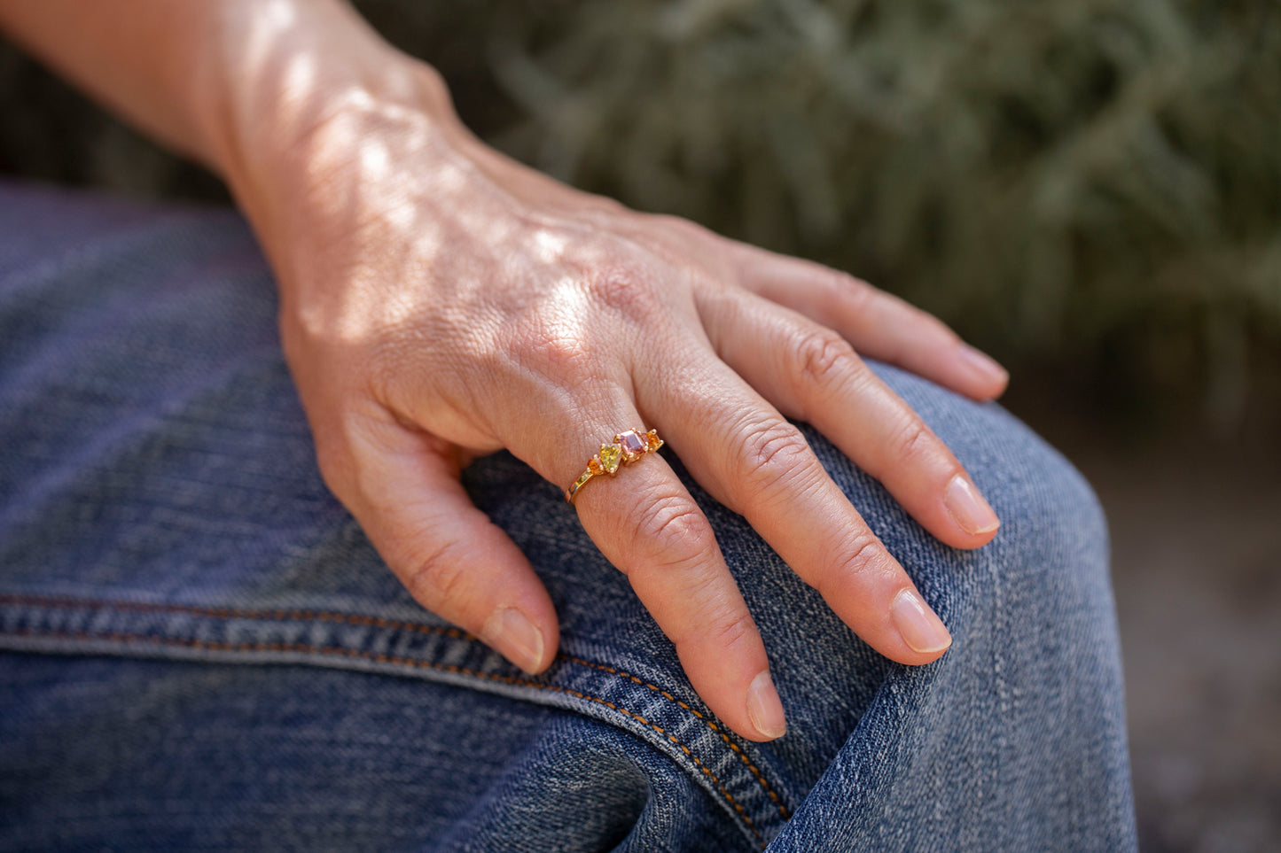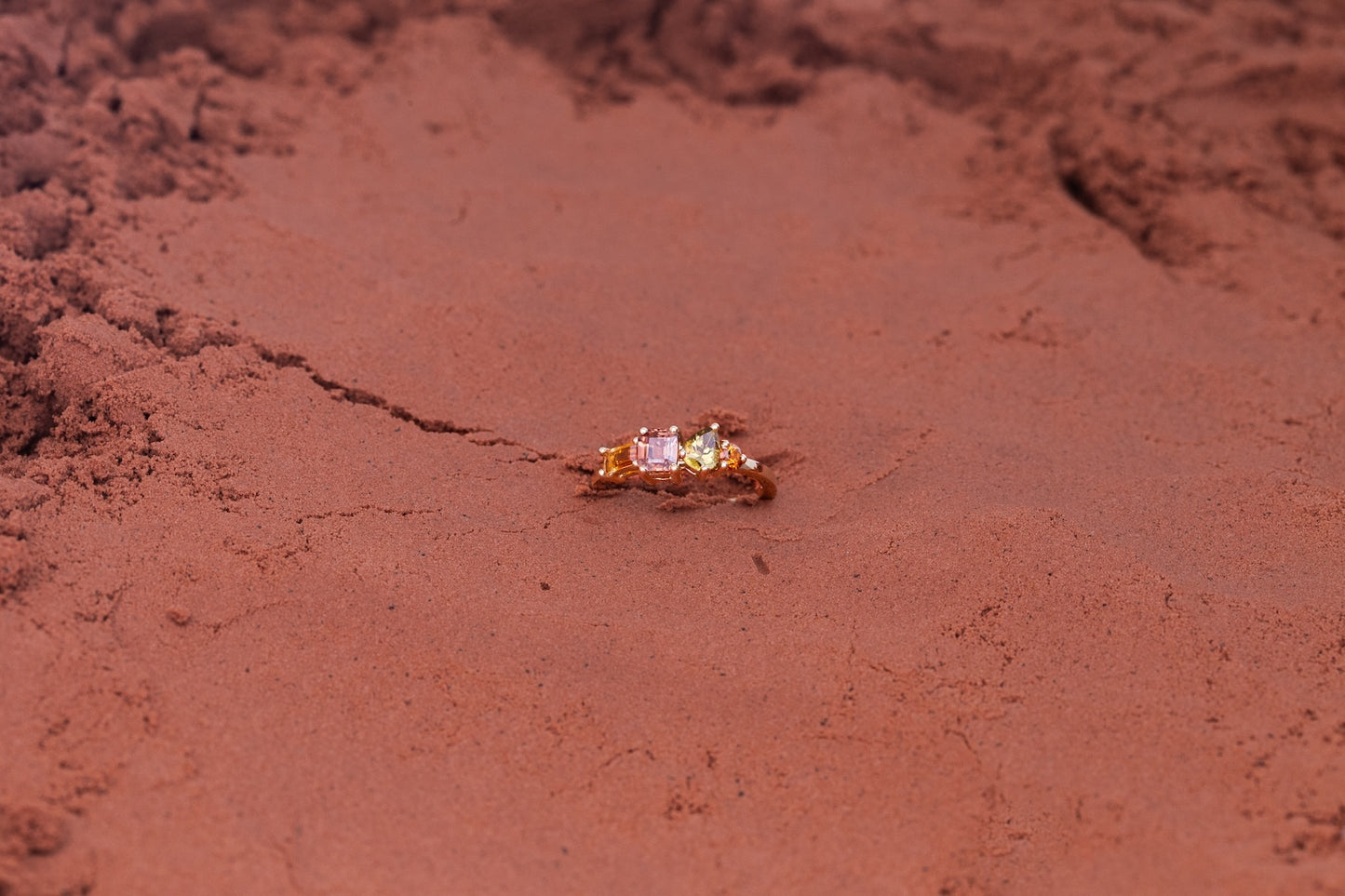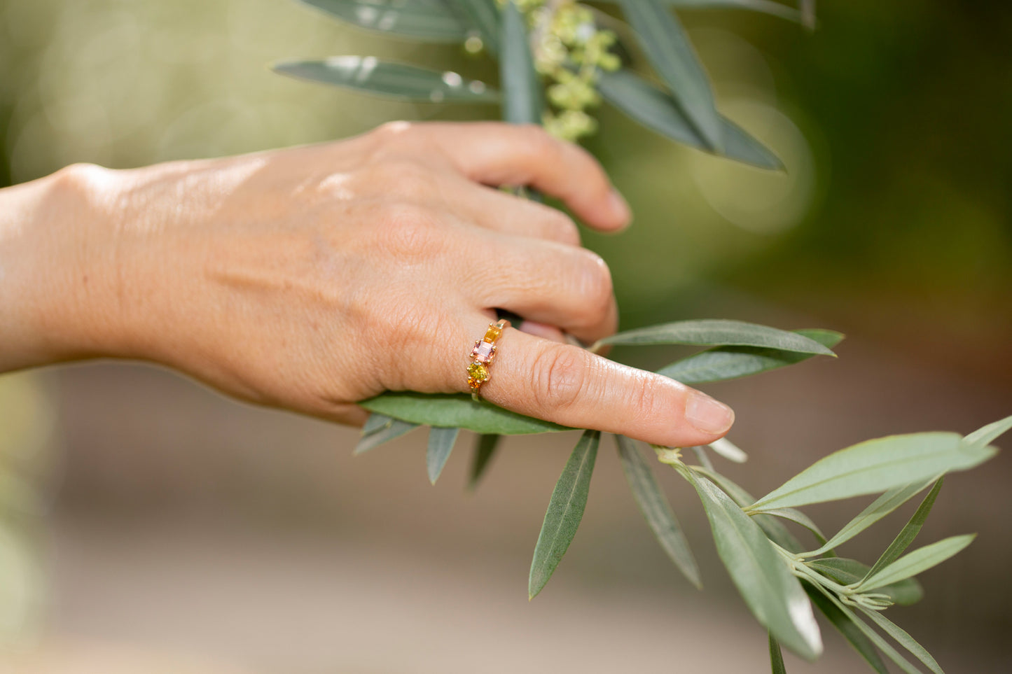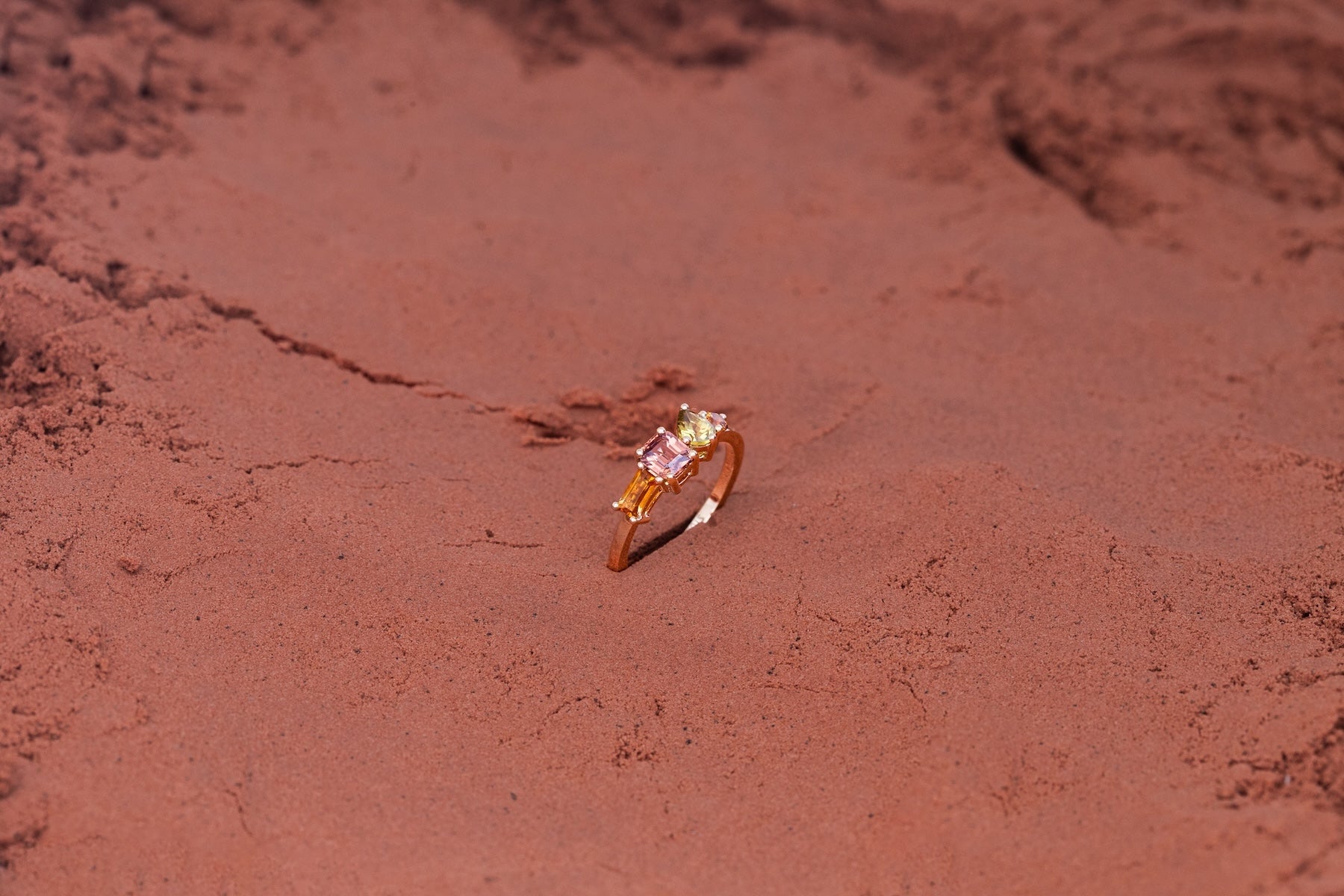 "La bague Vallée Orange exprime une harmonie éclatante de teintes chaudes, où chaque pierre précieuse, choisie pour sa pureté et son intensité, dialogue avec élégance. Les formes variées des gemmes, mises en lumière par un serti délicat, donnent naissance à une pièce d’une grande richesse visuelle."