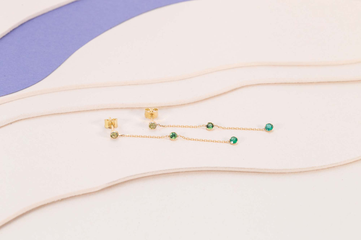 Boucles d’oreilles or jaune 750°°, péridots, tsavorites et émeraudes