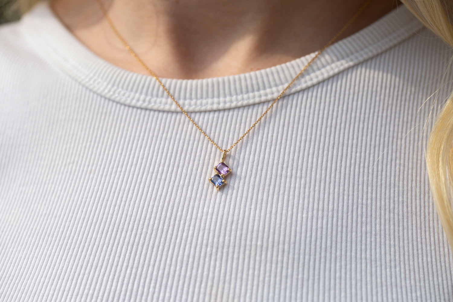 "Sélectionnés pour leur éclat naturel et leur teinte singulière, ces deux saphirs non chauffés racontent l’instant précis où la pierre brute devient lumière. Leur dialogue de couleurs, à la fois doux et contrasté, capture l’émotion pure d’un fragment minéral encore vibrant de son origine."