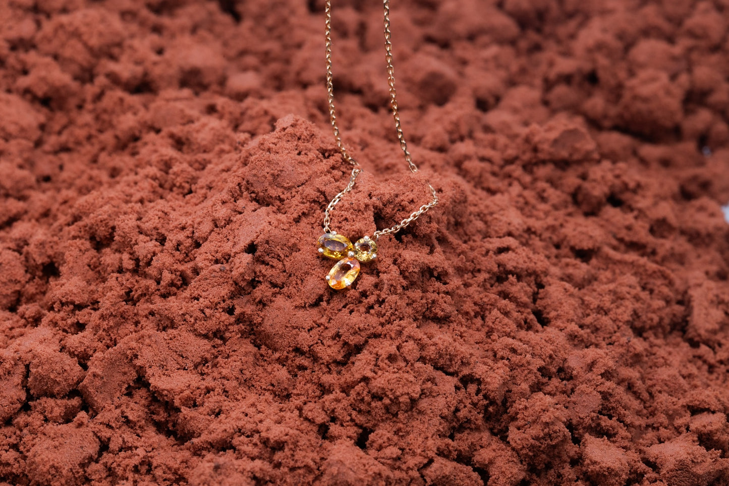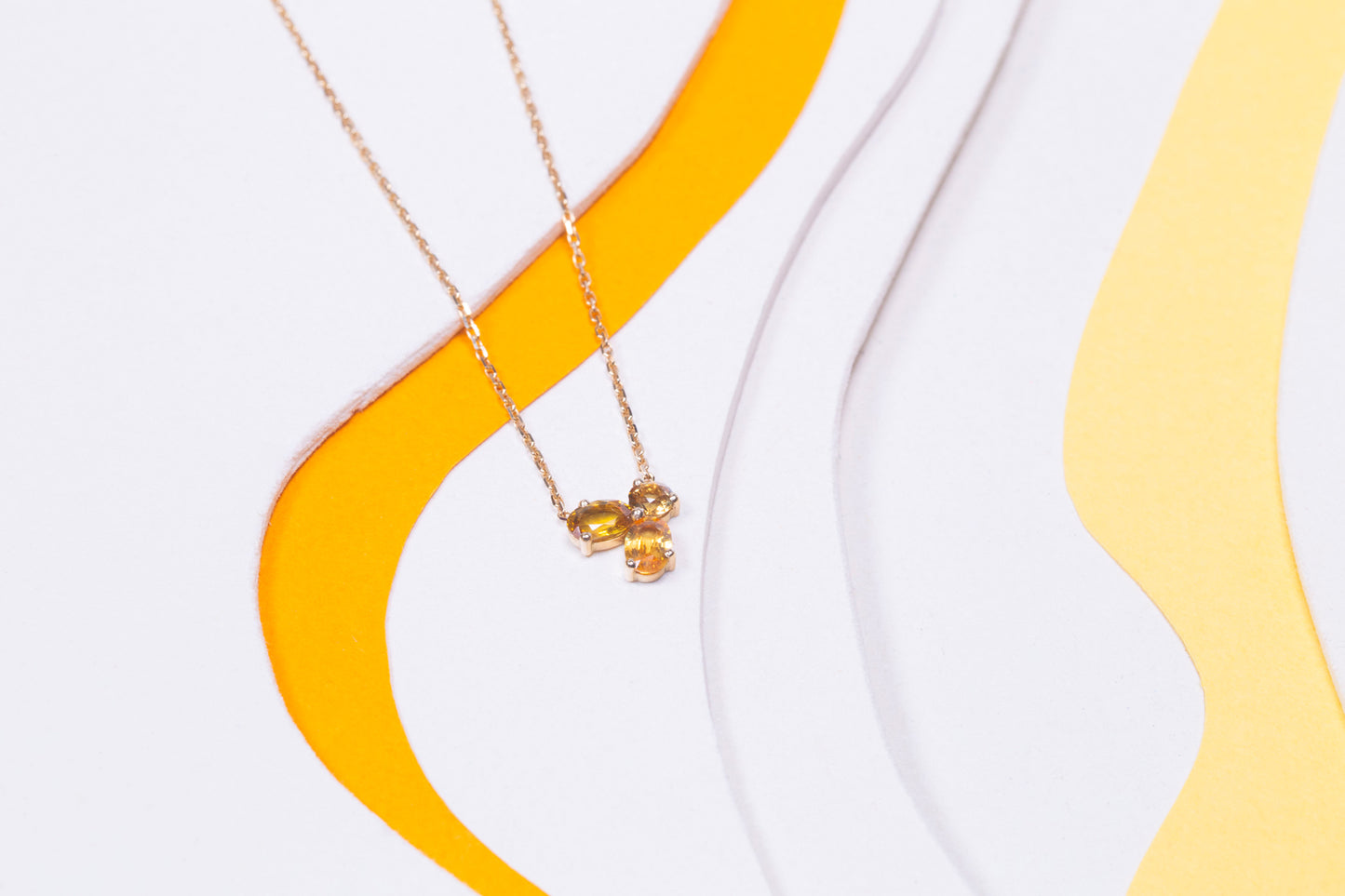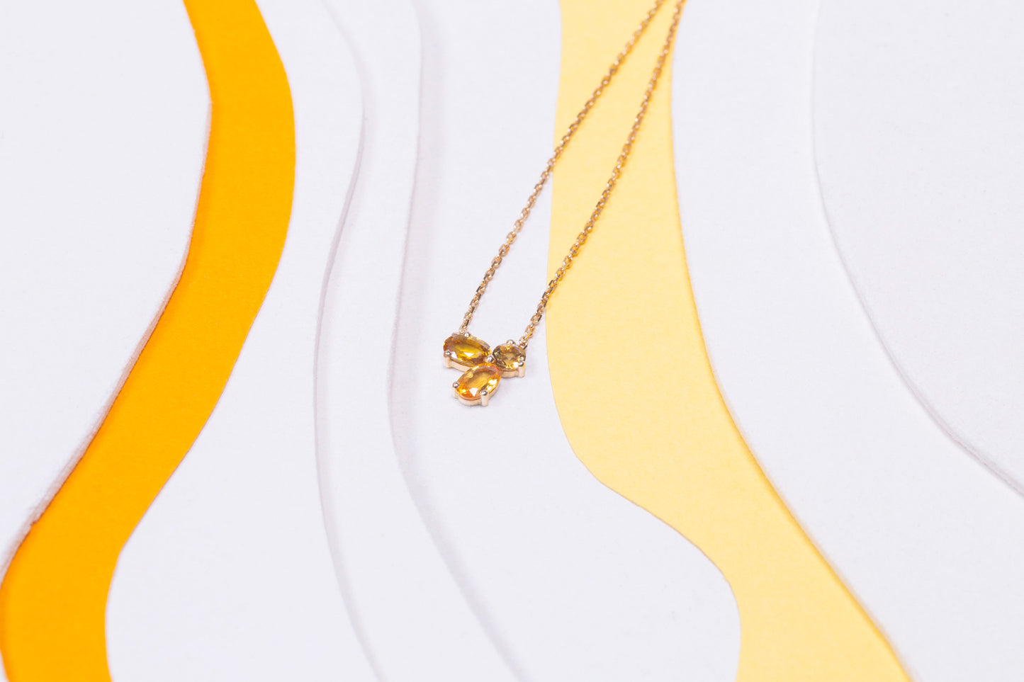 Collier or jaune 750°° recyclé, saphirs jaunes et citrine